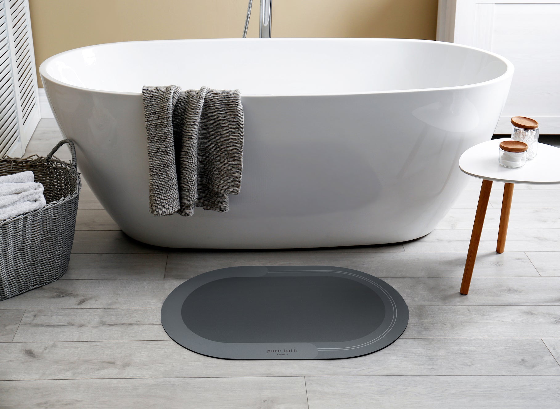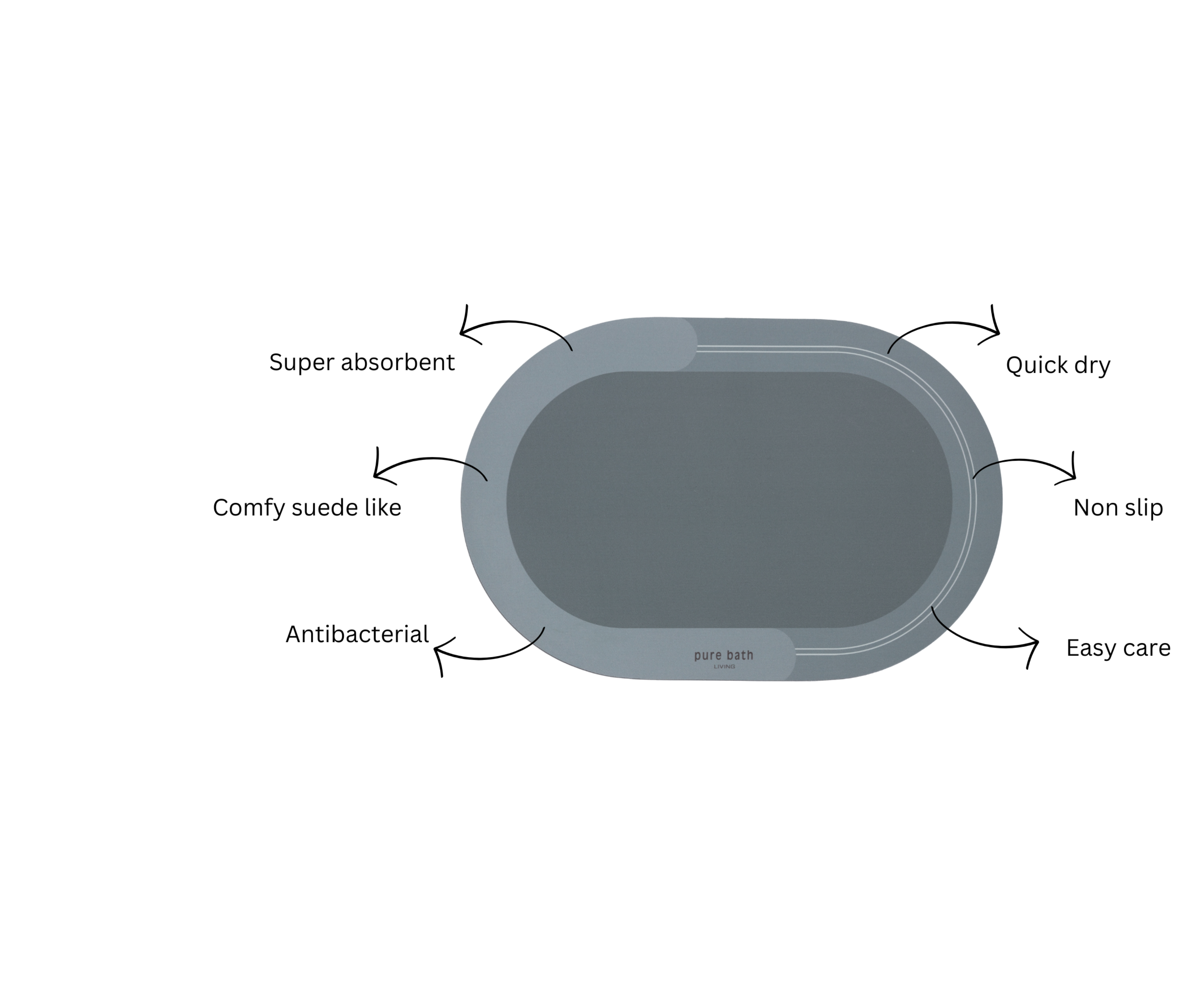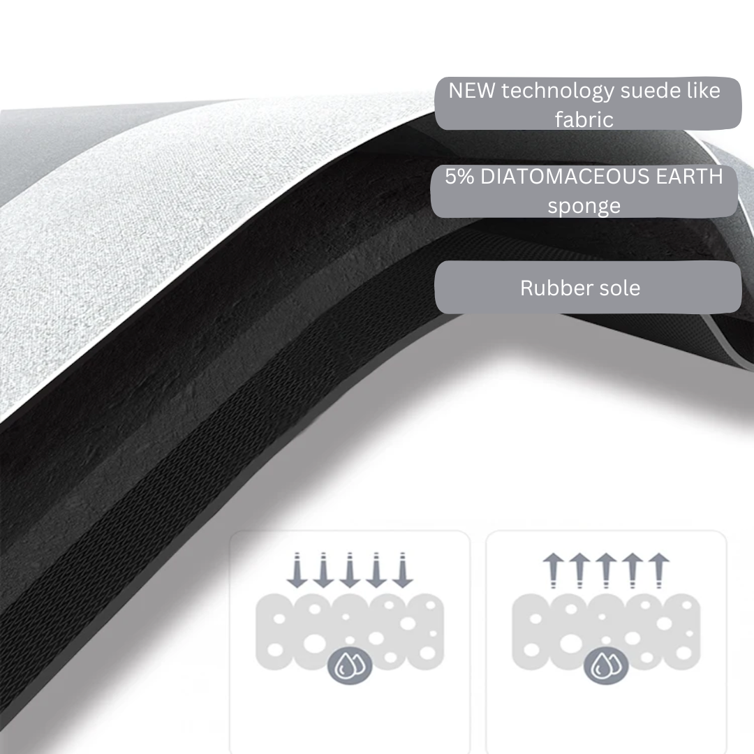 Middle sponge layer of this mat contains 5% natural diatomaceous earth which absorbs x4 water of its own weight in 0.5 seconds and is naturally antimicrobial due to fast drying ability. Watermarks vanish within minutes, appearing dry almost instantly.